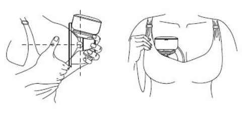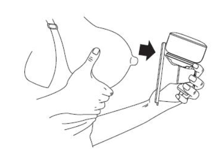 Bước 1: Lắp chặt bộ phận chắn silicon của máy hút sữa vào bầu ngực, đảm bảo không có khe hở và cố định phần giữa núm vú, giữ thẳng, cẩn thận không làm biến dạng vị trí của sản phẩm và bầu ngực, nếu không thì máy sẽ không hút được sữa.