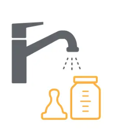 Bước 1: Làm sạch bình sữa, núm vú, ngậm nướu, muỗng, bát... dưới vòi nước.