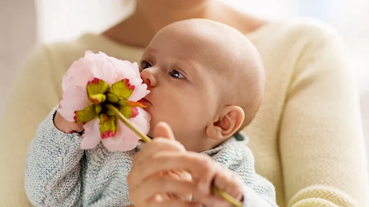Khứu giác là giác quan giúp bé nhận biết mùi hương từ các vật xung quanh. Trong giai đoạn sơ sinh, bé đã bắt đầu phản ứng với mùi hương từ mẹ, từ sữa mẹ hoặc các loại thực phẩm khác nhau.